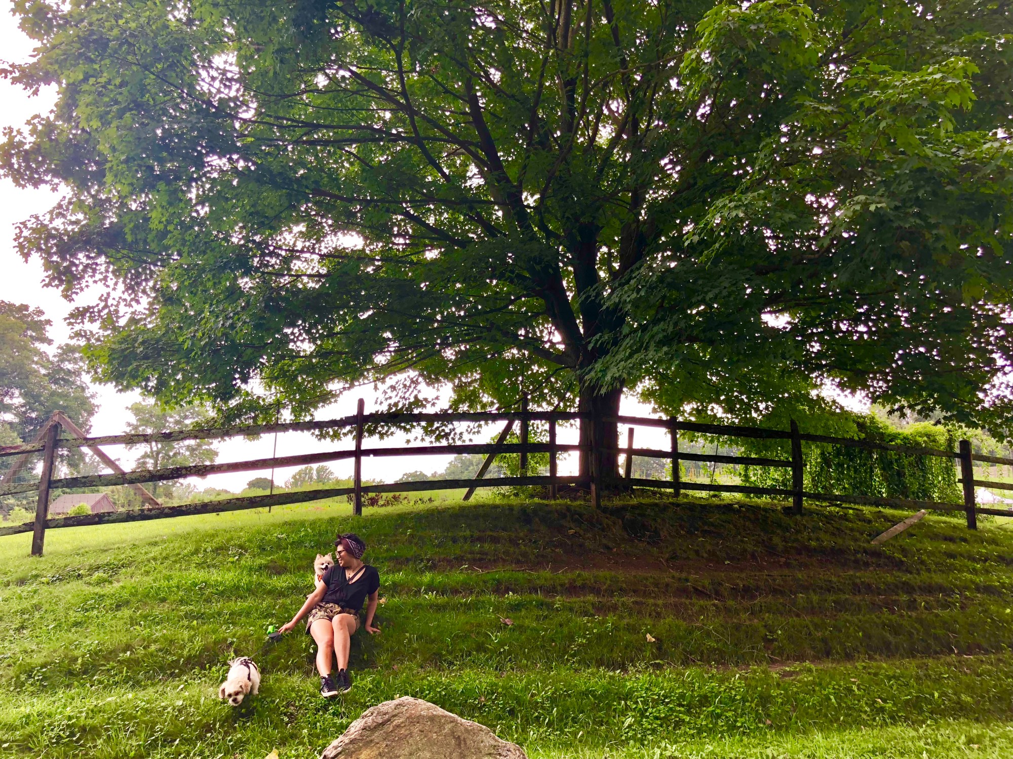 We drove up to the farm this weekend to get out of the city and fill our lungs with some fresh air. We’re members of the Stonebarns Center, just an hour north of NYC. They offer fun activities like vegetable harvesting, meeting farm animals, tastings — just totally up my alley. It was a rainy day so there wasn’t much going on so we decided to just take the dogs for a stroll along the grassy paths. Oliver even met his first cow friend.